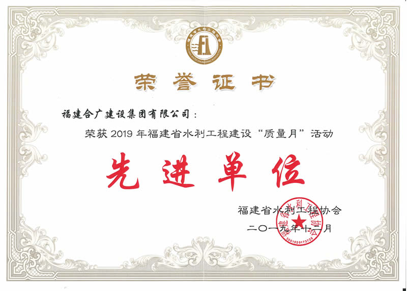• 2019年福建省水利工程質(zhì)量月榮譽證書
