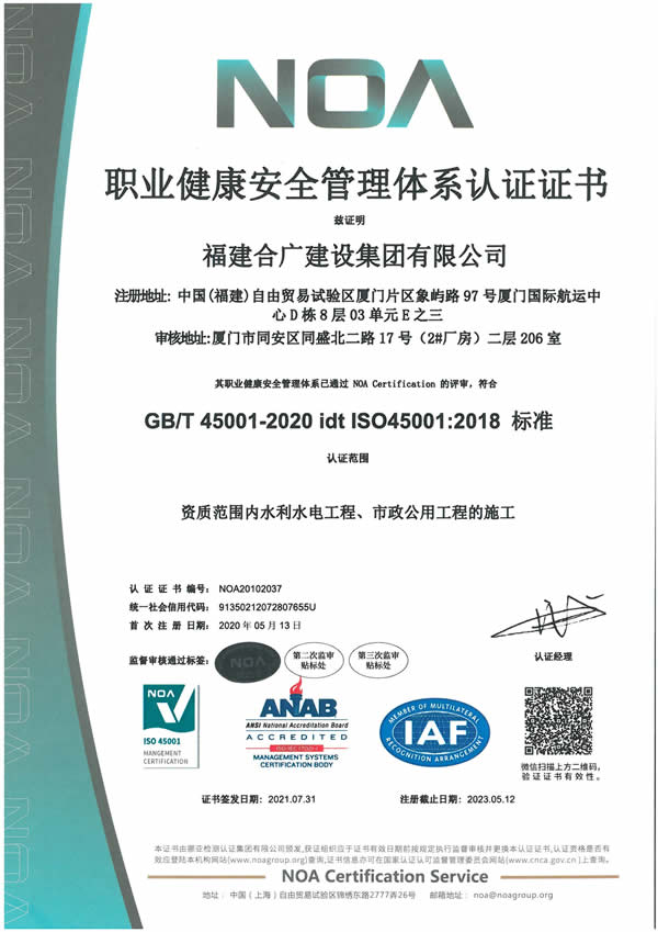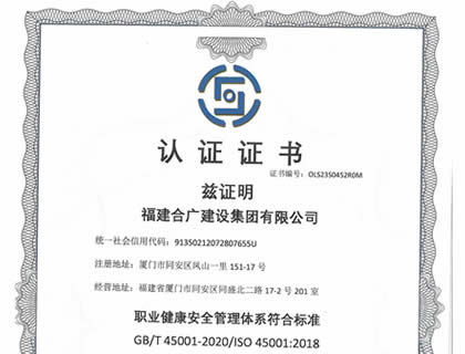• 2020年職業(yè)健康安全管理認證體系證書